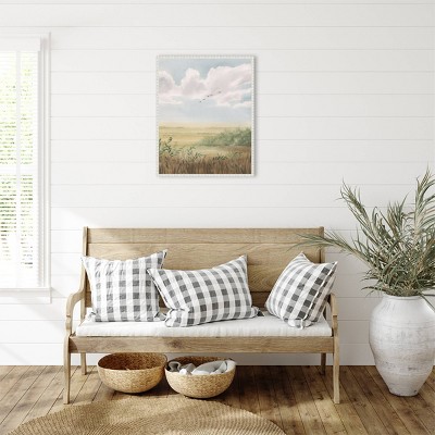 • FRAME DETAILS: The canvas is framed in the Sylvie Beaded White frame, which is a vintage float frame featuring a traditionally beaded ornate design with white coloring, a subtle woodgrain pattern and dramatic depth. The frame measures 1 in. wide and stands 2 in. off the wall. The canvas appears as if it is floating in the frame because it has a narrow gap between the edge of the canvas and the frame. The overall size of this framed canvas print measures 23 in. W x 28 in. H.