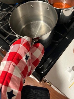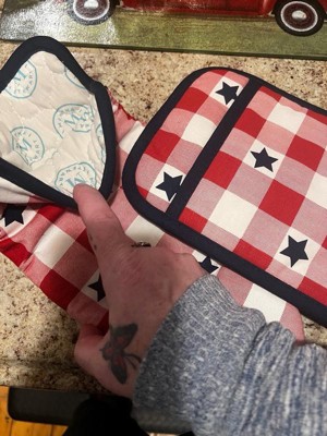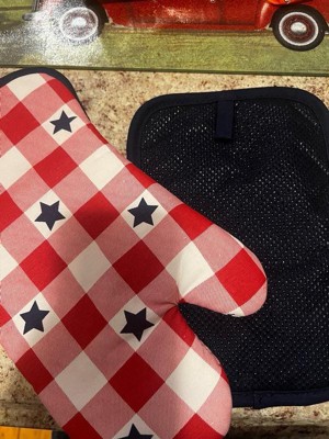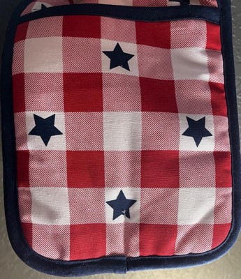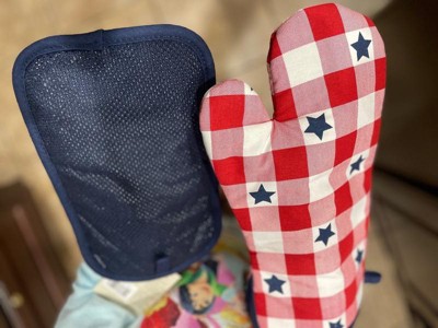 MARTHA STEWART Americana Star Gingham Oven Mitt & Pot Holder Set, Red/White/Blue, 7"x13" & 7"x10"