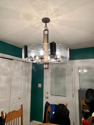 [This review was collected as part of a promotion.] I love my Aberdeen 6 Light Chandelier in Olde Bronze. It is absolutely beautiful! The chandelier was a little tricky to set up by myself. Definitely recommend having another person to help assemble it since the glass is thick and heavy. I’d definitely recommend having help putting it up. The glass gives off water ripple effect/look. The whole chandelier is made of high quality materials. The double metal is strong and the olde bronze finish makes it look rustic. The wood in the center also really helps give it that rustic look too. I like that you’re able to adjust the links to how far you want it to hang. I wasn’t able to let it hang too far for risk of someone hitting their head on it so two links was enough for me. Even though I had to cut down on the amount of links used it is still beautiful!! My kitchen is so much more inviting and bright. I can actually see what I’m doing now. Highly recommend! You won’t be disappointed!
