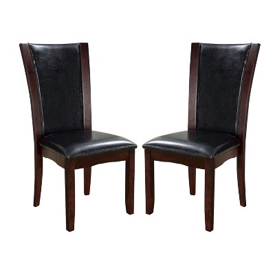 This elegant chair features a plank-inspired design and wooden block legs with a sturdy construction. Finished in dark cherry and a padded leatherette seat, this dining chair is sure to make quite the impression. It¡¯ll be the perfect addition to your dining room. Sold in a convenient set of two.