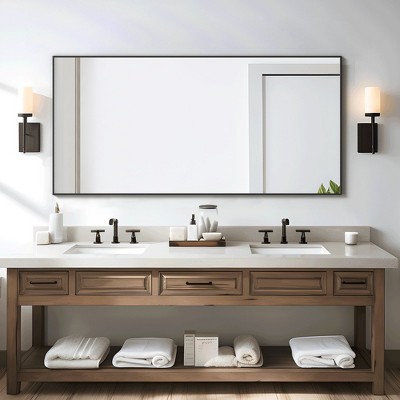 Dovelina Metal Frame Rectangle Bathroom Vanity Mirror Large Wall Mirror - 59"x35",Black