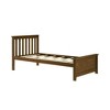 Transform your child's bedroom into a haven of comfort, quality, and style with the Max & Lily Twin size platform bed. Designed to cater to both kids and parents, this bed combines functional brilliance with delightful fun, creating the ideal sleep and play space. Crafted with meticulous attention to detail, the Max & Lily kids twin bed frame boasts superior quality. Made from knot-free solid pine wood, it ensures unmatched durability and stability. The bed's enduring strength is further enhanced by its metal support bar and sturdy plywood slats, offering a remarkable 400-pound resting weight capacity per sleeping surface. Immerse yourself in modern elegance with the bed's clean design. The slatted headboard exudes a contemporary charm, while the flush, color-matching hardware provides a seamless, polished finish. The bed's metal on metal structural connections ensure stability over time, making it a reliable addition to your child's room. Our wooden twin bed is designed to optimize space without compromising comfort. Measuring 81.5"L x 42.5"W x 36.5"H, it perfectly fits standard rooms, providing ample room for sleep and play. Enhance its functionality by adding coordinating under-bed storage drawers or a trundle bed (sold separately), effortlessly adapting to your needs. Assembly is a breeze with clear instructions, a slat roll, and necessary hardware included. This bed caters to both children and parents, making it easy for 2+ adults to set up. Safety is paramount, and the Max & Lily Twin Bed meets or exceeds federal safety standards for children's furniture, ensuring peace of mind. Elevate playtime with the bed's thoughtful design that frees up valuable space, allowing your child's imagination to flourish. As a member of the Maxwood family of brands, Max & Lily is dedicated to delivering superior quality, safety, and enjoyment in kids' furniture. Experience exceptional quality and affordability with the Max & Lily solid wood twin size bed with headboard and footboard, an investment in your child's comfort and happiness that will stand the test of time. Make bedtime and playtime truly special – order now and discover the perfect blend of function, style, and fun.