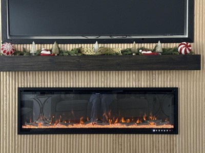 Modern Ember Modern Rustic 72 Inch Wood Mantel Shelf in Charcoal Black Stowe, Sand Groove Pattern