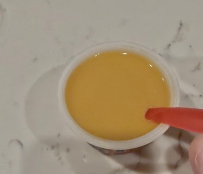 So much water that it’s just a soupy liquid. Tried to attach a video of me stirring it, but app won’t allow videos. Also has a relatively bland taste for mixed fruits, which I’d expect to be fairly bold and sweet. Very disappointing that Target chose to water down their store brand so they could sell it for a lower price than more well-known baby food brands. Not even close to the quality offered by Gerber and Beech-Nut. I love the Beech-Nut fruit purées I buy from Target. I’m going back to that brand.