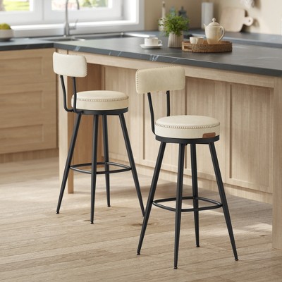 Set of 2 Modern Bar Stools, 30-Inch Swivel Counter Height Stools, PU Leather Upholstery, Mid-Century Design
