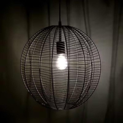 • Round, globe-shaped shade wrapped in brass-finish wire
