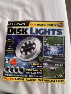 Bell + Howell 8 LED Solar Powered Disk Lights, 4 Pack, Outdoor Pathway Lights, Waterproof, Auto On/Off, Rust Resistant