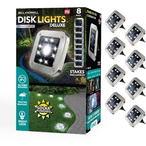 Bell + Howell 8 LED Square Solar Powered Outdoor Disk Lights - Walkway Lights, Waterproof, Auto On/Off, 8 Pack