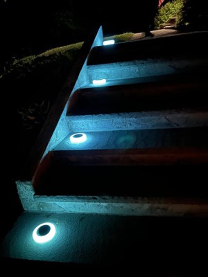 [This review was collected as part of a promotion.] I was thrilled to get these lights for my stone stairs out in front of my home!!! They change colors! So we started out with the white color and it was great, but the turquoise looks amazing!! One button to turn on/off and change colors so easily! Now our stairs are safe to walk up in the pitch black night! I couldn’t love these more!!