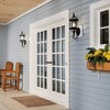 [This review was collected as part of a promotion.] I love the bronze and glass all around look of this fixture. The size is larger than I thought, but it still looks wonderful by my front doors. The actual quality of the fixture seems very nice and has a good heavy feel, but I installed it without help. I love the "throw" of light it provides, look how it covers a very large area. It came with everything needed to install and I had it up in about 20 minutes max. I think it fits in nicely with my newly painted gray home and I have been showing it off to everyone!