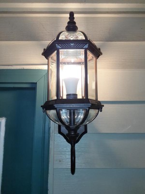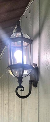 This 1 light wall lantern from the Barrie collection is a perfect outdoor embellishment with classic and sophisticated details. Made from cast aluminum, this outdoor light is able to withstand the elements and features a beautiful Black finish with clear beveled glass panels. Back Plate Height: 4.50 Back Plate Width: 6.87