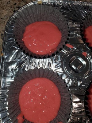 The only thing good about these cupcakes is the fun element of revealing the color. For the record, we got green. The cupcake mix itself was quite watery and thin when prepared according to the package instructions. We used a rubber spatula and a pour spout measuring cup for the cupcake batter. We scraped just about every drop and got about 8 cupcakes. The cupcake itself was decent but nothing so special that I would run out and buy another box.