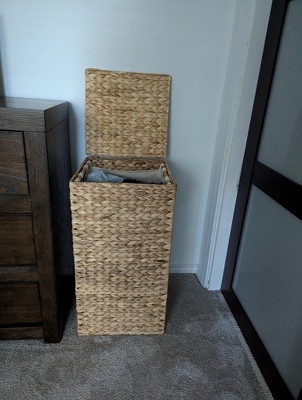 Casafield Laundry Hamper with Lid and Removable Liner Bag - Espresso Dark Brown, Woven Water Hyacinth Square Laundry Basket for Clothes