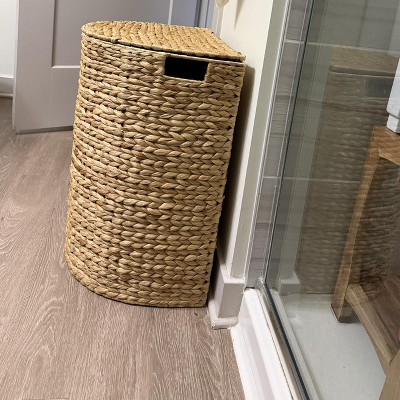 Better than expected. Love the half moon shape to avoid square edges. Well constructed, sturdy hamper. Fabric liner fits of hamper well, attached with velcro around the entire top edge and open handle spaces. I love how the color/texture of woven seagrass cozies up the modern finishes of my bathroom. Initially felt priced too high. After receiving do see quality is higher than most others.