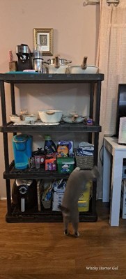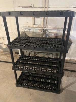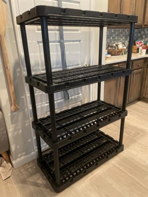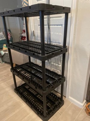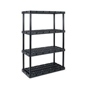 With its simple, no-tool setup, lightweight body, and black coloring, you can easily make this storage unit work in any room of the house. Easily snap all the included parts of this multi-purpose unit together for a simple, no-stress installation process. Plus, with the Knect-A-Shelf feature, you can interconnect multiple units from any side for added storage space (additional units sold separately). Constructed of durable and lightweight materials, the storage possibilities are endless. Each shelf is ventilated and made to support up to 150 pounds and up to 750 pounds overall, allowing you to organize seasonal clothing items, home decor, toys, supply crafts, and other tools or accessories. Make sure that you distribute the weight evenly on the fixed shelves. This organizing shelf offers an ideal height for both kids and adults and is a great addition to any home or office space.