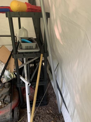 [This review was collected as part of a promotion.] While my pictures show a mess, I promise it’s more organized. We are rearranging our shed at the campground. We store everything in our shed and it can get a little crowded with the golf cart, mower, and odds and ends. The shelf really helped get our stuff off the ground and out of the way. It’s incredibly easy to setup. Takes mere minutes. It’s lightweight and easy to move if/when needed. The shelf is durable and will hold a lot. I love the slim, simple style. We are going to get a couple more units for the campground and our garage at home. Worth every penny.