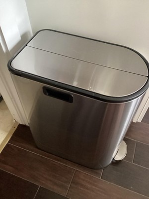 I had searched far and wide for a dual compartment that was slim enough not to stick out into the walkway of my kitchen? and also could open under the partial overhang of the counter. Well, this was the only one because of the winged lids. I also didn’t want an electric one because I hate changing batteries. I found this exact model on 3 other retailers sites. Target had a sale, then the additional 5% off with my Circle debit card, and the fact that Target has a 90-day return policy, sealed the deal (because I’ve seen reviews that some started messing up around 3 months). It’s perfect! Finally, I don’t have to have 2 separate trash bins. And I saved $20 with the sale and discount!