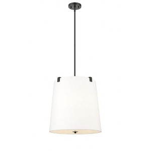 A simple minimalist aesthetic offers sophisticated and traditional style with this five-light pendant. Brushed nickel finish steel framing with clips attaches to a white linen fabric shade, offering a low-profile vibe, as candelabra lights diffuse illumination beautifully. This fixture is dimmable, creating mood lighting and efficient functionality. Material: Steel, Finish Color: Brushed Nickel, Width: 18", Height: 18", Length: 18", Lamping Type: Incandescent, Number Of Bulbs: 5, Wattage: 60 Watts, Dimmable: Yes, Moisture Rating: Damp Rated