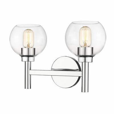 The precision of a perfect circle defines the modern ambiance of a contemporary three-light vanity wall light. From the Sutton collection, the sconce boasts a trio of torch-style lights, complete with warm brushed gold finish framing and a round wall plate. Three open-edged globe shades are precisely crafted in clear glass, delivering maximum illumination to your vanity and bathroom space.