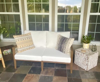 - Use this outdoor wood loveseat as patio lounge seats, or pair them with our matching armchairs!