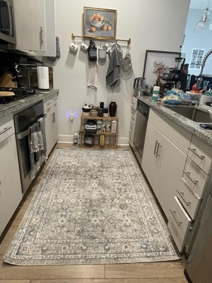 I’ve been using this rug for a few weeks in my kitchen and I love it. It’s sort of a flatter type rug but it’s still comfy under my feet. The design is beautiful and looks almost vintage. My favorite part is that it’s washable. Being in the kitchen I’m always making messes so the fact that I can throw this in my washing machine is amazing.