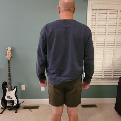 [This review was collected as part of a promotion.] My husband really likes these flat front 7 inch shorts by Goodfellow and Co. He really likes the length that hit him at mid thigh. He generally wears a 34 in bottoms and the 34 size in the shorts fit him perfectly. He thought that they were very comfortable and he likes the color and thinks it will go with a lot of things in his wardrobe. He likes that they show off his muscular legs LOL. I received an incentive to write this review.
