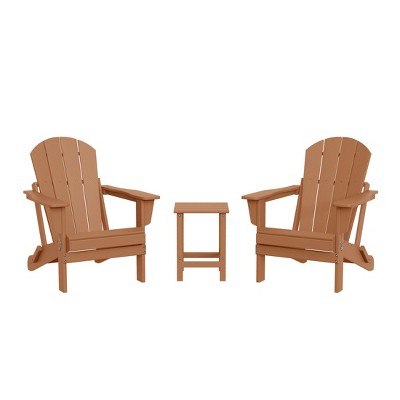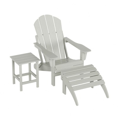 - Set Includes: Two (2) Adirondack Chairs, Two (2) Ottomans, One (1) Side Table