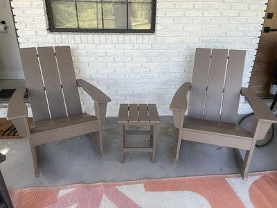 - Set includes: Two (2) Modern Adirondack Rocking Chairs