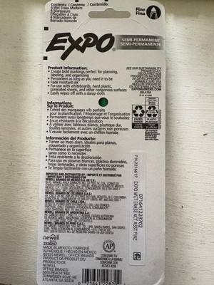 [This review was collected as part of a promotion.] I received the Expo wet erase 4CT. I like it, they write smoothly and are bold and easy to read. I have the blue, green, red and black. It’s great for keeping notes neat!