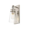 Fusing romantic, contemporary aesthetics, the Wentworth single-light wall sconce brings indulgent elegance in conjunction with welcomed accent lighting and a hint of nautical style. Dress up a classic modern space with a carefully designed fixture featuring a sparkling clear glass conical shade and a collection of accents fashioned of polished nickel finish metal. Dimmable: Yes Shade Included: Yes