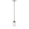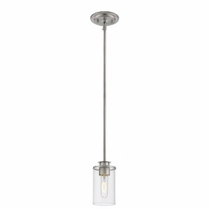 Avant-garde touches give this mid-century modern one-light mini pendant an elegant chicness. Highlighting the glowing brilliance of the clear glass cylinder shade, the brushed nickel finish complements with a perfect gleaming tone. Bedroom/Dining Room/Dinette/Kitchen/Kitchenette No. of Rods: 7 Shade Included: Yes Cord Length: 110.00 Rod Length(s): 12.00 Dimmable: Yes Material: Steel, Finish Color: Brushed Nickel, Width: 4.5", Height: 8", Lamping Type: Incandescent, Number Of Bulbs: 1, Wattage: 100 Watts, Dimmable: Yes, Moisture Rating: Dry Rated