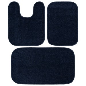 Garland Rug Gramercy 3pc Washable Bathroom Rug Set Navy: Machine Made, Non-Skid, Polypropylene Bath Mats Set