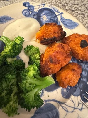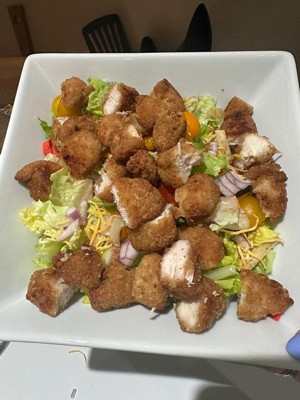[This review was collected as part of a promotion.] These chicken bites are perfect for busy nights and were super tasty! The bag didn’t have a ton of crumbs like many “nuggets” do, they crisped up well, and were delicious on our salads!