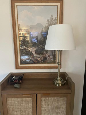 [This review was collected as part of a promotion.] The design of this lamp is simple and aesthetically pleasing. It can go with any decor. I like the antique brass. It’s not too yellow and goes well with the black and gold hardware I have. It is pretty heavy duty and provides enough illumination to light up a corner of a room.