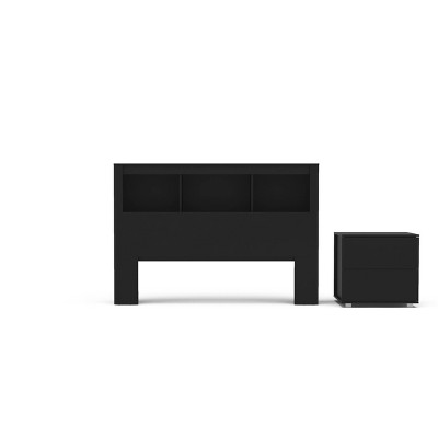 Polifurniture 2pc Full Juliette Bedroom Set Black: Modern Style, Includes Headboard & Nightstand