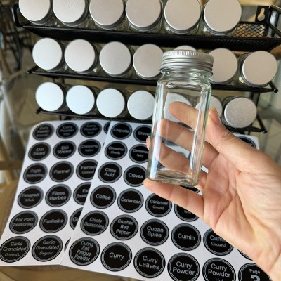 very stylish and convenient spice organizer, it's convenient that the set comes with stickers, also stickers with a blank field and a white marker, my kitchen has become much more stylish and tidy.