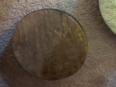 The larger riser measures 10 inches in diameter and stands 2.2 inches tall, while the smaller one measures 8 inches in diameter and stands 2.1 inches tall. They're perfect for displaying candles, plants, picture frames, and more, and their varying sizes make them versatile enough to use together or separately. Handmade in India