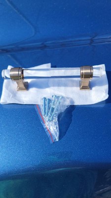 [This review was collected as part of a promotion.] I just received a gorgeous cabinet pull from Amerock. My son does carpentry and wants to install it on a small dresser that he is building. The piece is bronze with clear champagne color on the handle. It is heavy and made well. The size is 3 and 3/4 on center. It comes with four screws. The screws come in two different sizes to choose from. I recommend buying hardware made by Amerock for the style and quality workmanship.