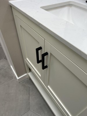 I bought this hardware for a bathroom makeover and it looks great! I wanted to update the hardware to something simple but modern and this was perfect!