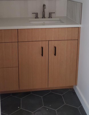 I bought this hardware for a bathroom makeover and it looks great! I wanted to update the hardware to something simple but modern and this was perfect!