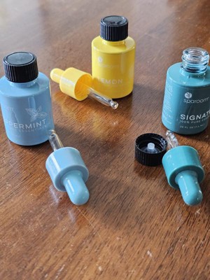 These oils smell really good- especially the lemon and signature scents. I like the dropper- It makes it easy to put the oils into a water diffuser or onto a stone diffuser. The dropper is glass, so I feel like I will need to be careful with that aspect, but I like the smell of them. They are fresh and natural smelling.