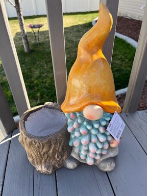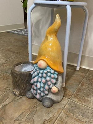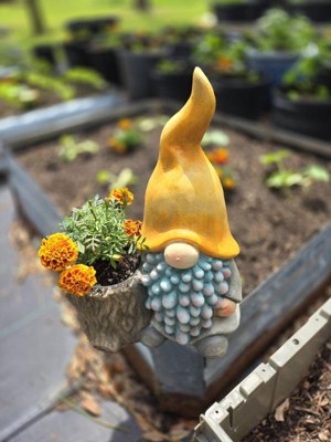 Let the Alpine Corporation Gnome Planter become your new favorite flowerpot. This MGO planter with a drainage hole creates optimum conditions for a variety of plants. It’s crafted to be sturdy and last for years to come, even when left in the elements. Measuring 12"L x 7"W x 16"H, this adorable planter is perfect for showcasing your favorite small plants, succulents, or herbs. Whether placed on a patio, porch, or in the garden, the Gnome with Yellow Hat Planter is sure to capture the hearts of nature enthusiasts and gardening enthusiasts alike. With Alpine's 1-year warranty, you can Shop With Assurance and Buy With Confidence.