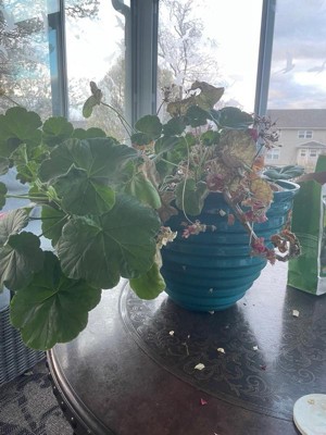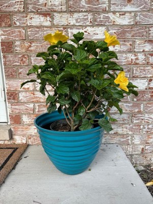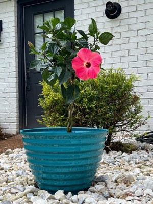 [This review was collected as part of a promotion.] This flower pot is a beautiful shade of glossy blue which made my hibiscus flowers pop in contrast. I love how lightweight yet durable the pot is. I keep it outside and have not noticed any fading whatsoever. I would recommend this both for indoor and outdoor plants.