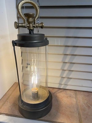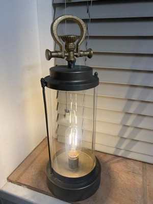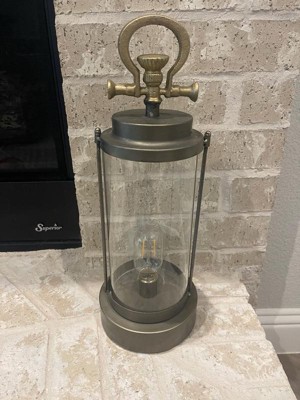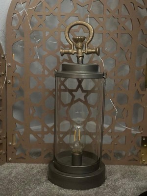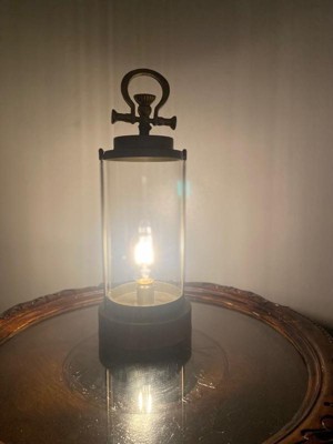 [This review was collected as part of a promotion.] e vintage metal and glass lantern exudes timeless charm with its elegant design and warm lighting. Crafted from high-quality metal, the lantern exudes durability and authenticity, adding a rustic industrial touch to any space. Its intricate detailing showcases superior craftsmanship, making it a standout piece in both indoor and outdoor settings. Setting up the lantern is a breeze, thanks to its user-friendly design. With no complicated wiring or installation required, simply insert AA batteries, and the lantern is ready to illuminate your surroundings with its inviting glow. Whether hung from a hook or placed on a tabletop, it effortlessly enhances the ambiance with its soft, welcoming light. It is about 16 to 18 inches tall, perfect for soft lighting there at fireplace or next to the TV.  Overall, this vintage lantern combines style and functionality seamlessly, making it a must-have accessory for those seeking to add a touch of warmth and character to their decor.
