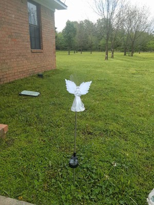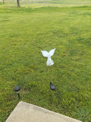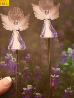 [This review was collected as part of a promotion.] These beautiful solar powered angels are a great addition to my outdoor decor. I love that they are solar powered and are so pretty and relaxing to look at. They glow pretty bright and are sturdy. Easy to assemble and install.