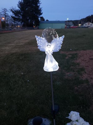 [This review was collected as part of a promotion.] I got these angel solar lights happy there was 2 in a pack I kept one for at home and took one to my little brothers gravesite and love them they are cute and bright. Great quality product.