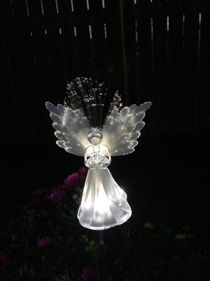 Alpine Corporation LED Solar Angel Fiber Optic Wings Garden Stake Set Novelty Sculpture Lights White