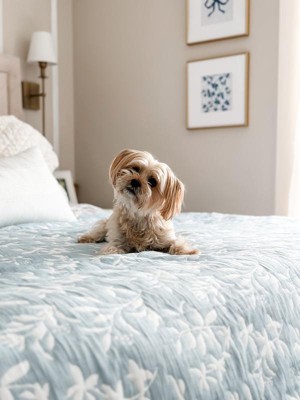 [This review was collected as part of a promotion.] This quilt set in the blue added the perfect Summer touch to our bedroom. Love that it is reversible, the perfect lightweight material for the season and so pretty to look at!