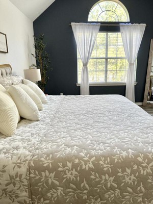 Lush Décor 3pc Full/Queen Floral Jacquard Reversible Soft Matelasse Quilt Set Neutral: Cotton Blend, Botanical Pattern, OEKO-TEX Certified