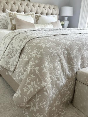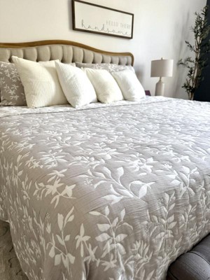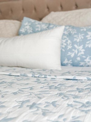 Lush Décor 3pc Full/Queen Floral Jacquard Reversible Soft Matelasse Quilt Set Blue: Cotton & Polyester Blend, OEKO-TEX Certified